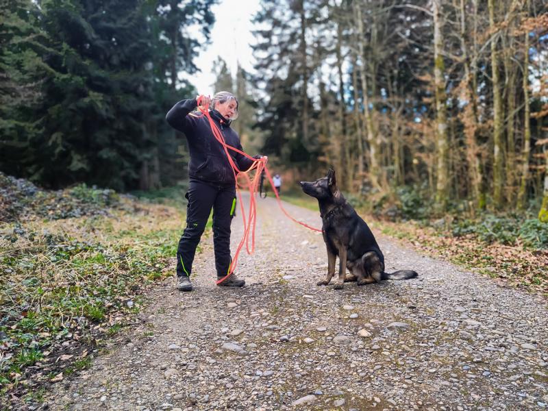 Ich begleite dich dabei, die Leine bewusster einzusetzen und dein Handling gezielt zu verbessern. Du lernst, wie Führung, Impulskontrolle und Umorientierung über die Leine unterstützt werden können und wie du auch in anspruchsvolleren Momenten klar und handlungsfähig bleibst.