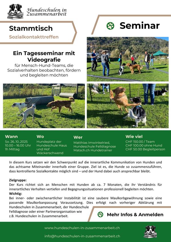 Ein Tagesseminar mit Videografie für Mensch-Hund-Teams, die Sozialverhalten beobachten, fördern und begleiten möchten