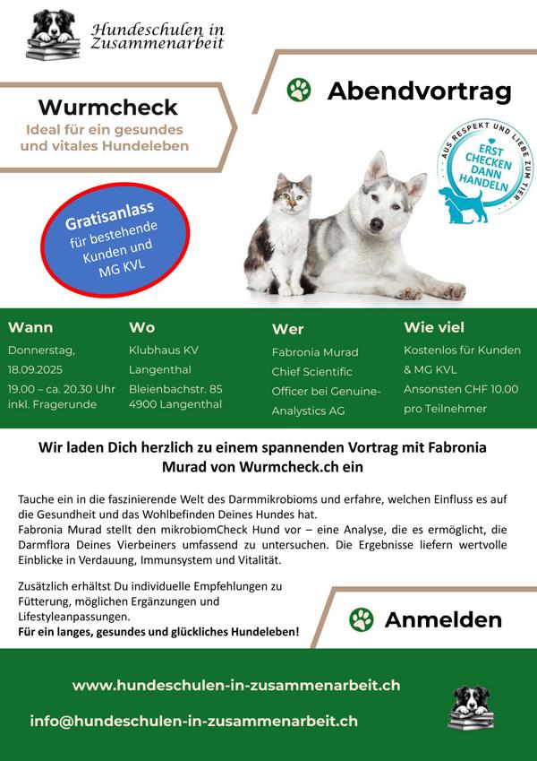 • Kostenlos für bestehende Kunden der Hundeschulen in Zusammenarbeit sowie Mitglieder des KVL